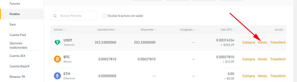 3. En la criptomoneda que deseas vender, clic en Venta