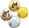 (4 Piezas) Monedas De Oro Dogecoin: Moneda Conmemorativa De Coleccionistas 2021 Chapada En Oro, Monedas De Coleccionistas Redondas Conmemorativas De Dogecoin, Moneda En Relieve De Dos Caras A