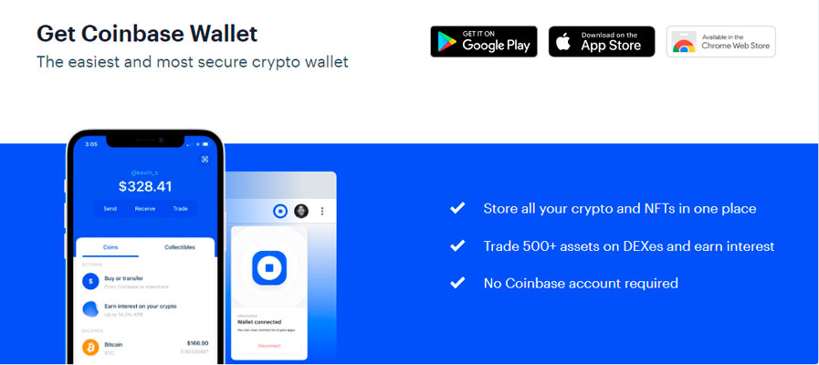 Puedes obtener la wallet Coinbase para el navegador Chrome o descargar la aplicación en tus dispositivos Android o iOS